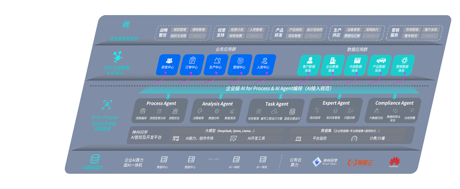 ng28南宫相信品牌力量问学智车解决方案是一套基于AI技术的汽车行业智能化系统,,,覆盖从底层算力到顶层AI应用的全栈方案。。。方案由算力层、、模型层和应用层组成:算力层,,,,方案支持多种一体机配置,,,,具备云端灵活部署、、、、多云适配以及动态优化计算资源的能力;模型层,,ng28南宫相信品牌力量问学平台版提供了企业级AI应用一站式构建与管理平台,,,,支持基于后训练强化技术的汽车企业专属模型的训练、、、评测和运营;应用层,,,ng28南宫相信品牌力量问学DeepSeek版提供包括超级员工、、、、智能招采、、、、智能营销、、、智能客服、、、AI for BI等一系列解决方案,,可助力汽车行业实现数字化转型,,,让管理更智能、、响应更敏捷。。。
